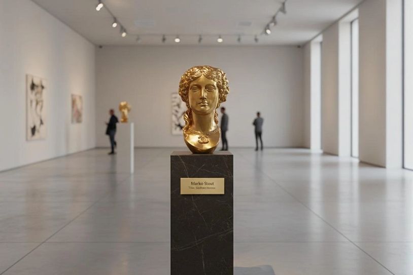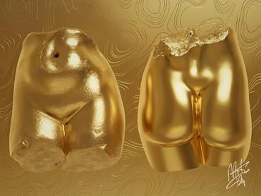 Where Sculpture Meets Seduction unveils Marko Stout’s bold fusion of power, sensuality, and modern luxury. Each metallic gold sculpture glows with an irresistible allure—polished, radiant, and alive with the pulse of contemporary desire. These striking works transform opulence into form, capturing the confidence and elegance of Stout’s world: where fashion, art, and temptation converge. Gleaming under light like liquid gold, each piece is a statement of pure glamour, sculpture reimagined as the ultimate symbol of sophistication and seduction.
