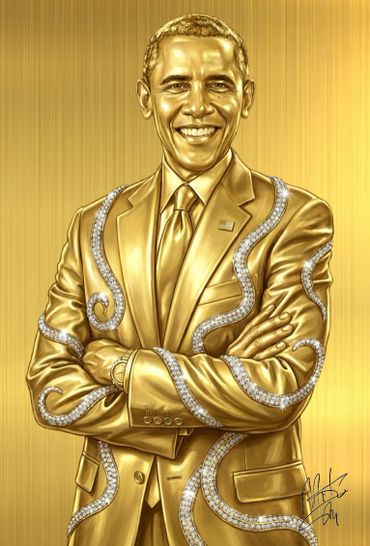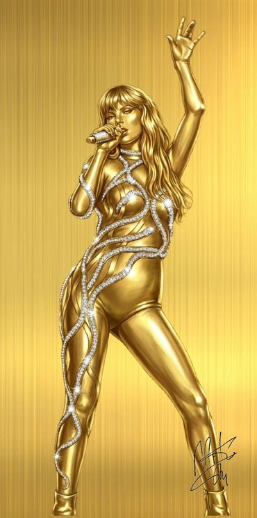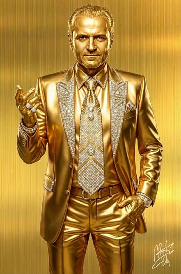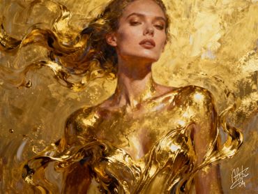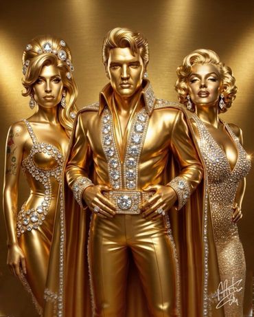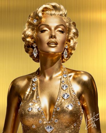 The Chromatic Gold Series presents Marko Stout’s most opulent exploration of color, form, and contemporary glamour. In this collection, gold becomes more than a hue—it transforms into a living atmosphere, a radiant language of power, seduction, and urban mythology. Each work reinterprets iconic figures through a lens of metallic luminosity, creating a dialogue between pop-culture identity and the refined elegance of museum-grade fine art.