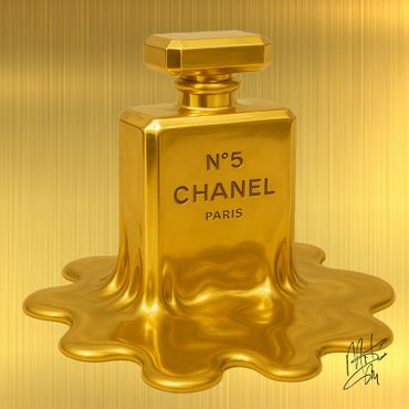 "Chic in a Can" is a dazzling fusion of pop culture and high fashion, where iconic soup cans are reimagined in gleaming gold and boldly branded with the names of legendary designers. Each piece in the series transforms everyday consumer goods into objects of desire—elevating the ordinary into the realm of luxury, glamour, and artistic rebellion. It’s not just what’s inside that cou