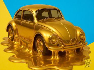 "Rough Cut Freedom" captures the rebellious spirit of youth and counterculture, reimagined through the unexpected opulence of a diamond-encrusted Volkswagen Beetle. This piece contrasts raw individuality with refined luxury, exploring how freedom is often imperfect, yet undeniably radiant.