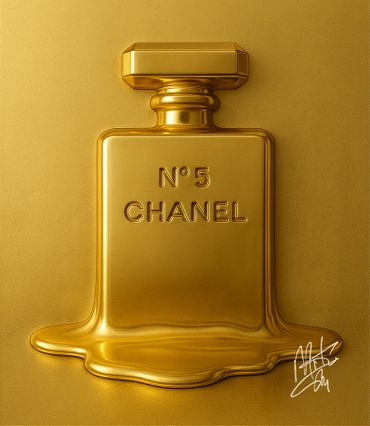 "Luxury Has a Spirit Animal" is a bold fusion of fashion mythology and surreal opulence, featuring a gem-encrusted golden French bulldog posed as a divine guardian against the iconic backdrop of Chanel. With the sacred Chanel No. 05 bottle at its feet, the piece explores how luxury transforms ordinary symbols into deities of modern worship—where glamour becomes ritual a