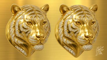 “Power Draped in Perfume and Teeth” presents a striking black panther crowned in gold, marked with the iconic Chanel logo—an embodiment of raw strength wrapped in luxury’s most seductive symbols. The piece blurs the line between elegance and danger, suggesting that true power wears both beauty and brutality without apology.