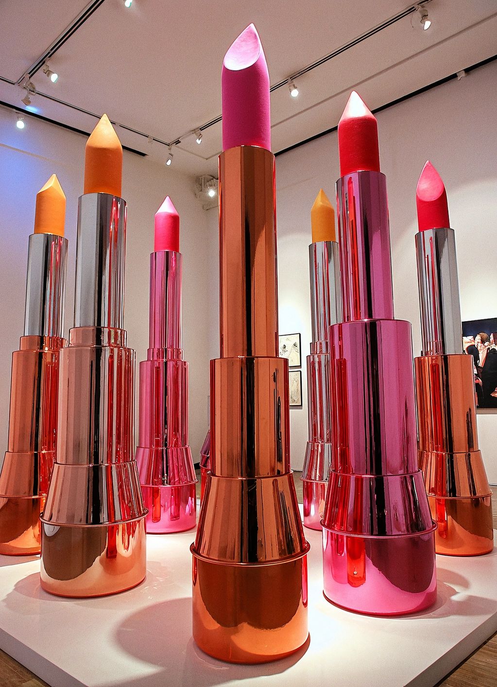 “Gloss Empire” is a towering tribute to beauty as power—featuring monumental metallic lipstick sculptures rising like a surreal city skyline. Shimmering in chrome and crimson, the installation transforms cosmetic glamour into an empire of desire, status, and untouchable allure.