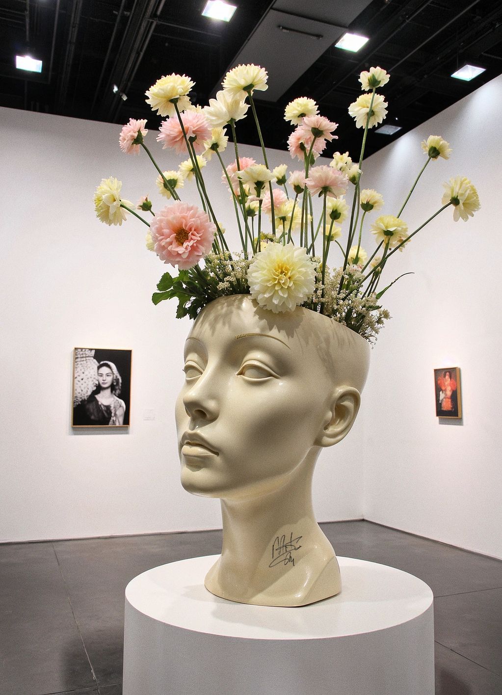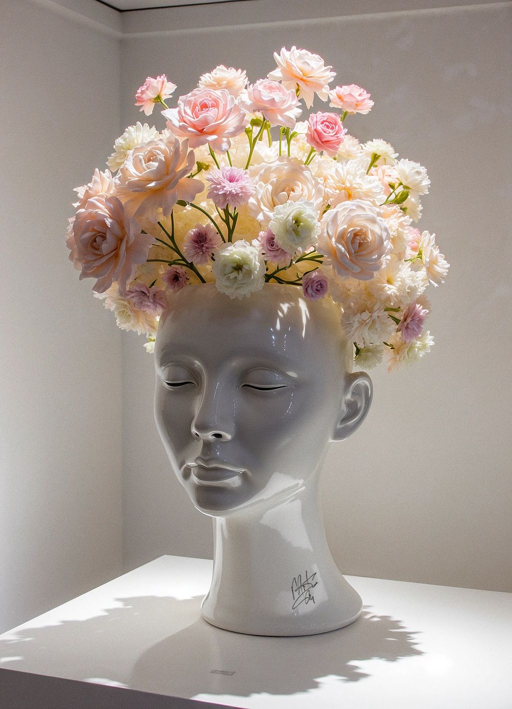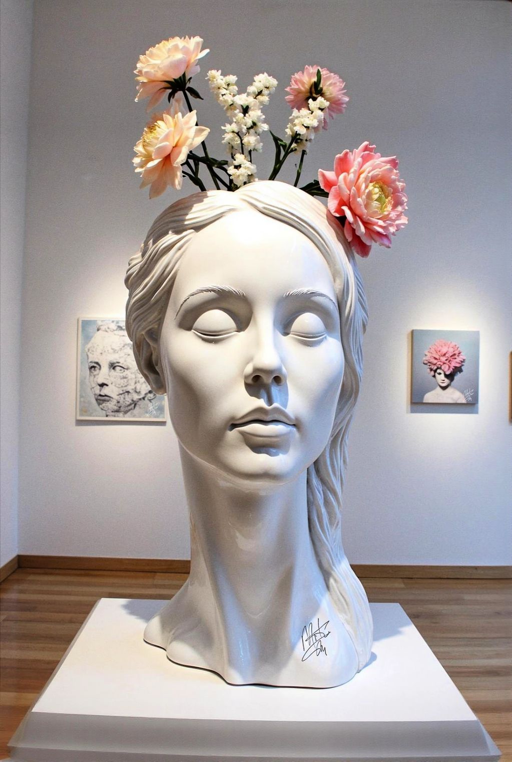 Petals & Paparazzi is a seductive collision of beauty and spectacle—where blooming femininity is forever caught in the camera’s flash. Marko Stout’s sculpture captures the surreal chaos of modern fame, turning a model’s porcelain head into both a flower vase and a shrine to voyeurism, obsession, and the curated illusion of intimacy.