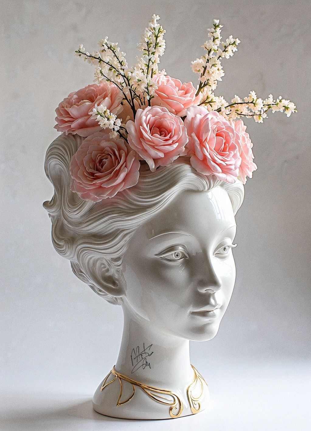 Desire in Porcelain captures the fragile tension between perfection and passion- an icy smooth exterior concealing a feverish bloom within. Marko Stout channels pop decadence and surreal longing, sculpting a muse whose silent gaze and flowered crown suggest both control and chaos, beauty and breakage.